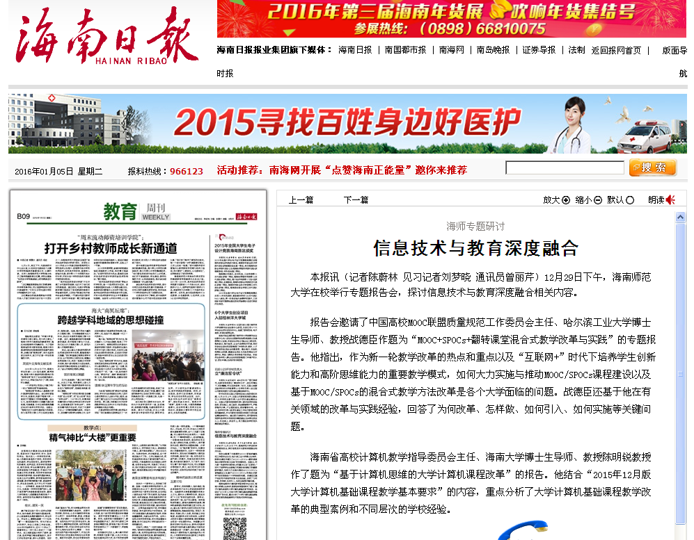 媒体报道链接:(海南日报)信息技术与教育深度融合