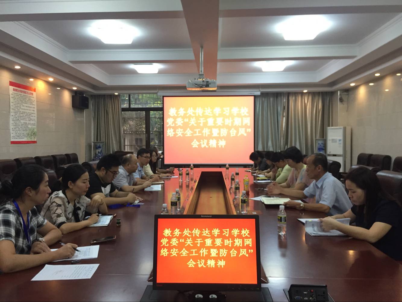 10月13日下午6点,教务处召开全体干部会议,及时传达学校党委召开的“ 重要时期网络安全工作会议” 和“ 防台风” 会议精神。