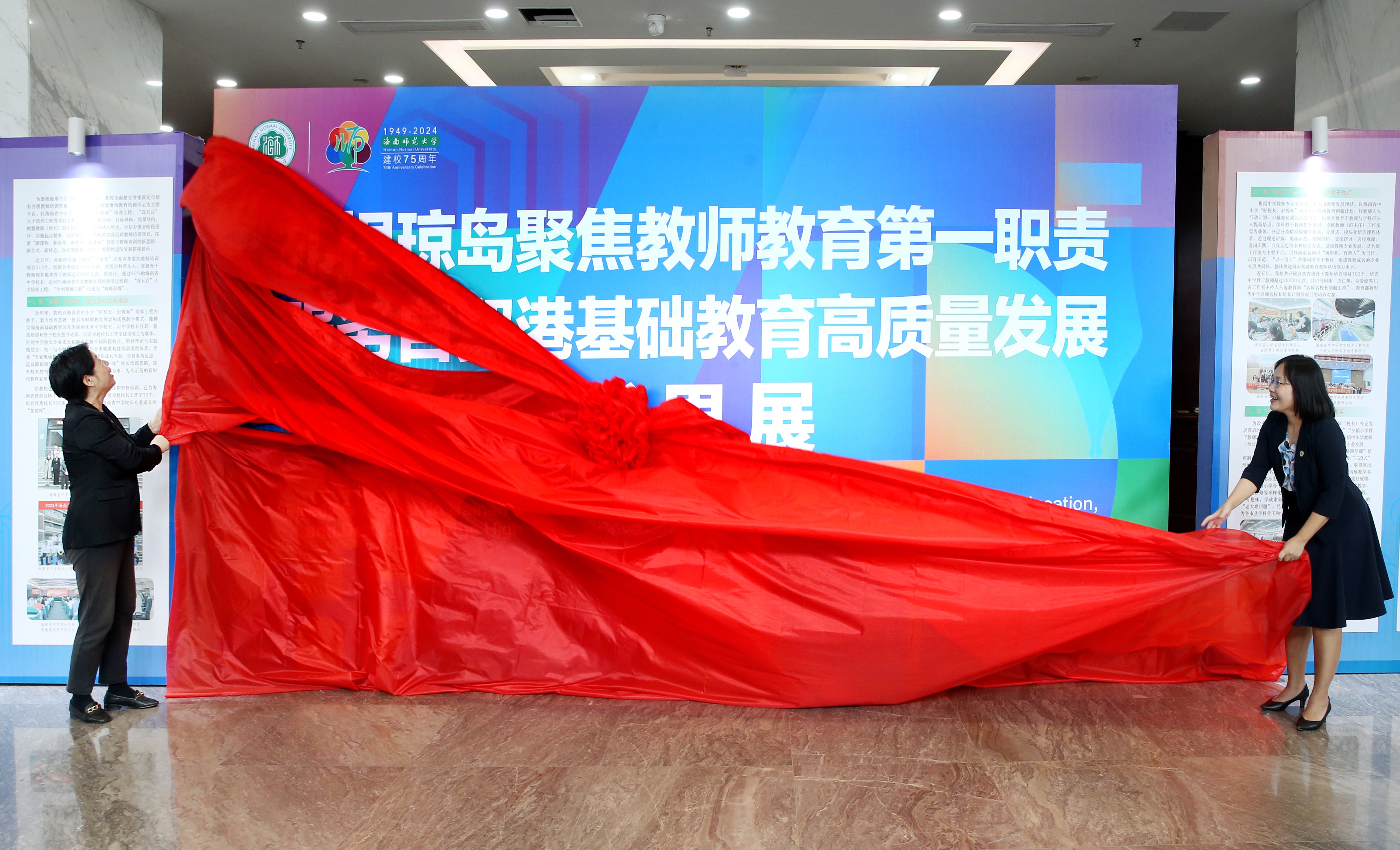 11月7日上午,我校在桂林洋校区图书馆一楼大厅举行“扎根琼岛聚焦教师教育第一职责·服务自贸港基础教育高质量发展”基础教育成果展。校党委书记许玫、副校长韩小雨出席,我校各职能部门负责人、学院负责人及师生代表共同参加开幕式。校党委常委、副校长张引主持开幕式。