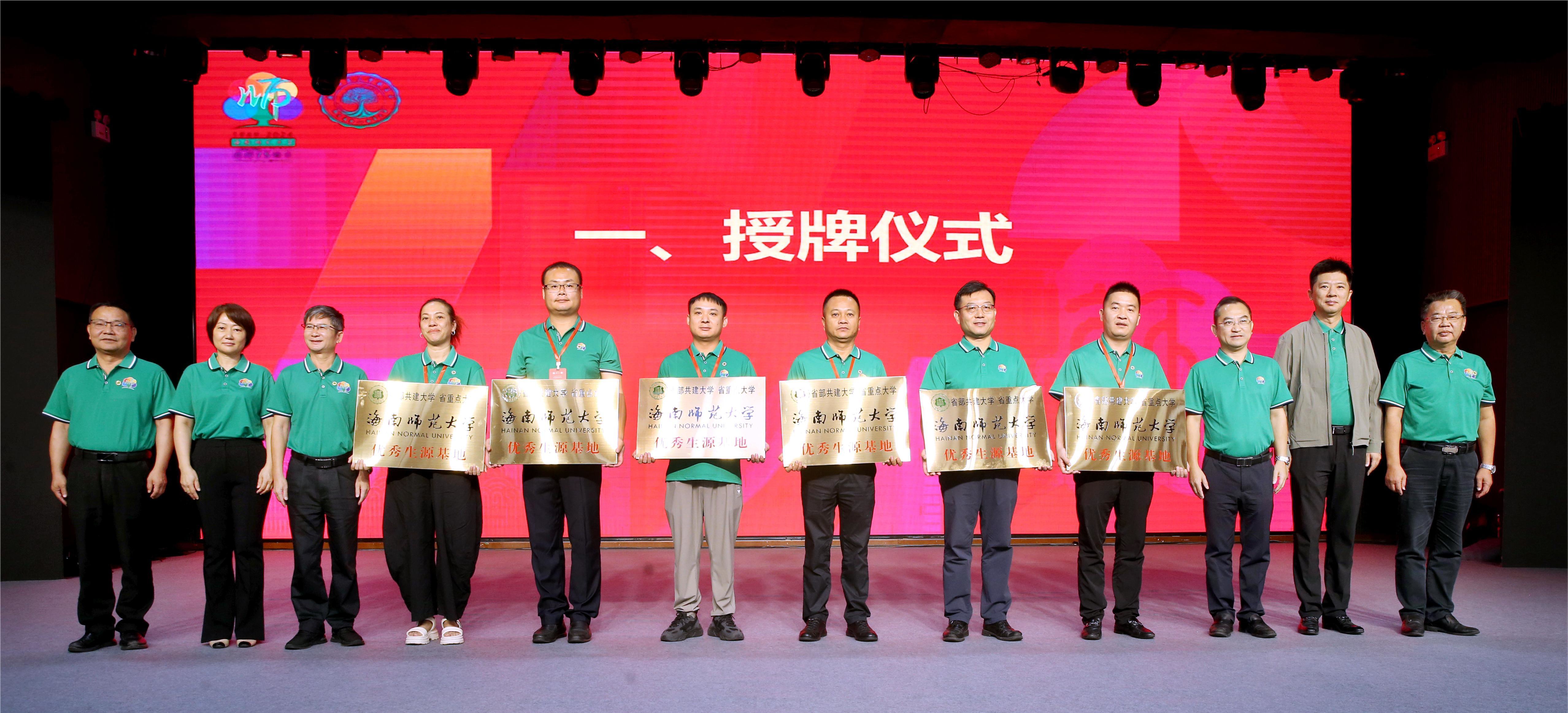 换届大会后,参加活动的全体校领导共同为海南中学、星空游戏官方附属中学、海南华侨中学、海口市第一中学、琼海市海桂中学、文昌中学等十所优秀生源基地授牌。