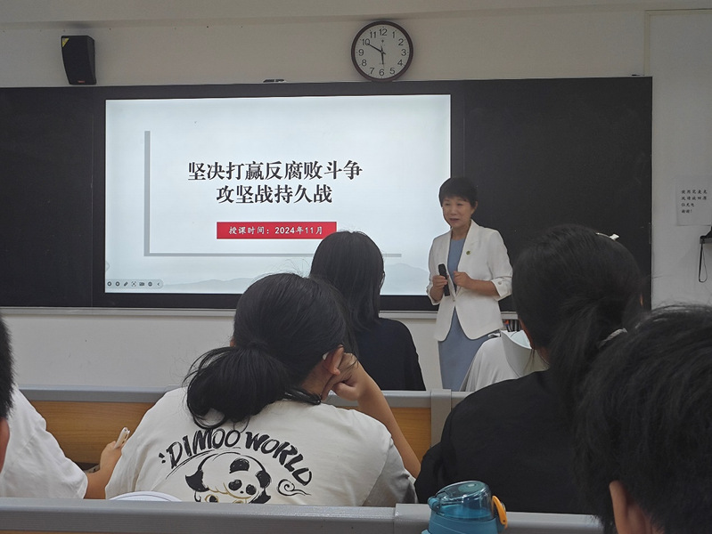 11月19日,学校党委委员、纪委书记、监察专员刘汝兵走进思政课堂,为2024级法学专业本科生讲授 “坚决打赢反腐败斗争攻坚战持久战”专题课。