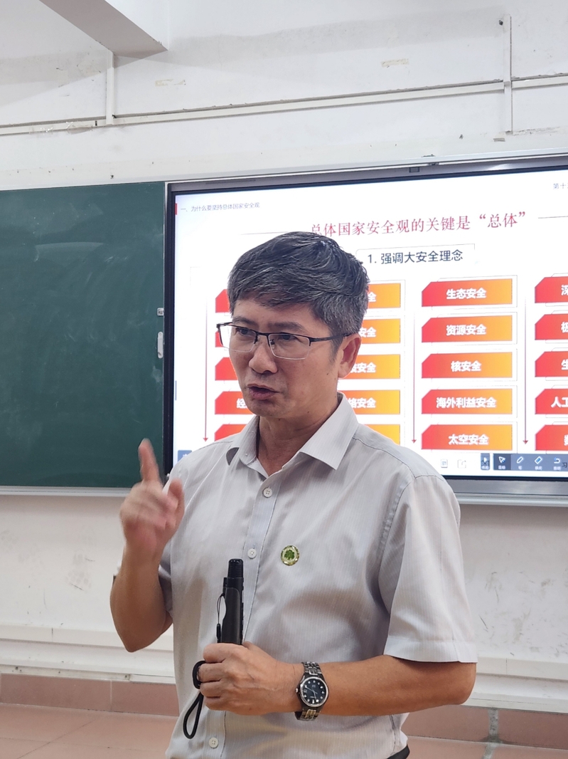 11月13日,校党委常委、副校长杨兹举走进思想政治理论课课堂,围绕“坚持总体国家安全观”的主题,为本科生讲授《习近平新时代中国特色社会主义思想概论》。
