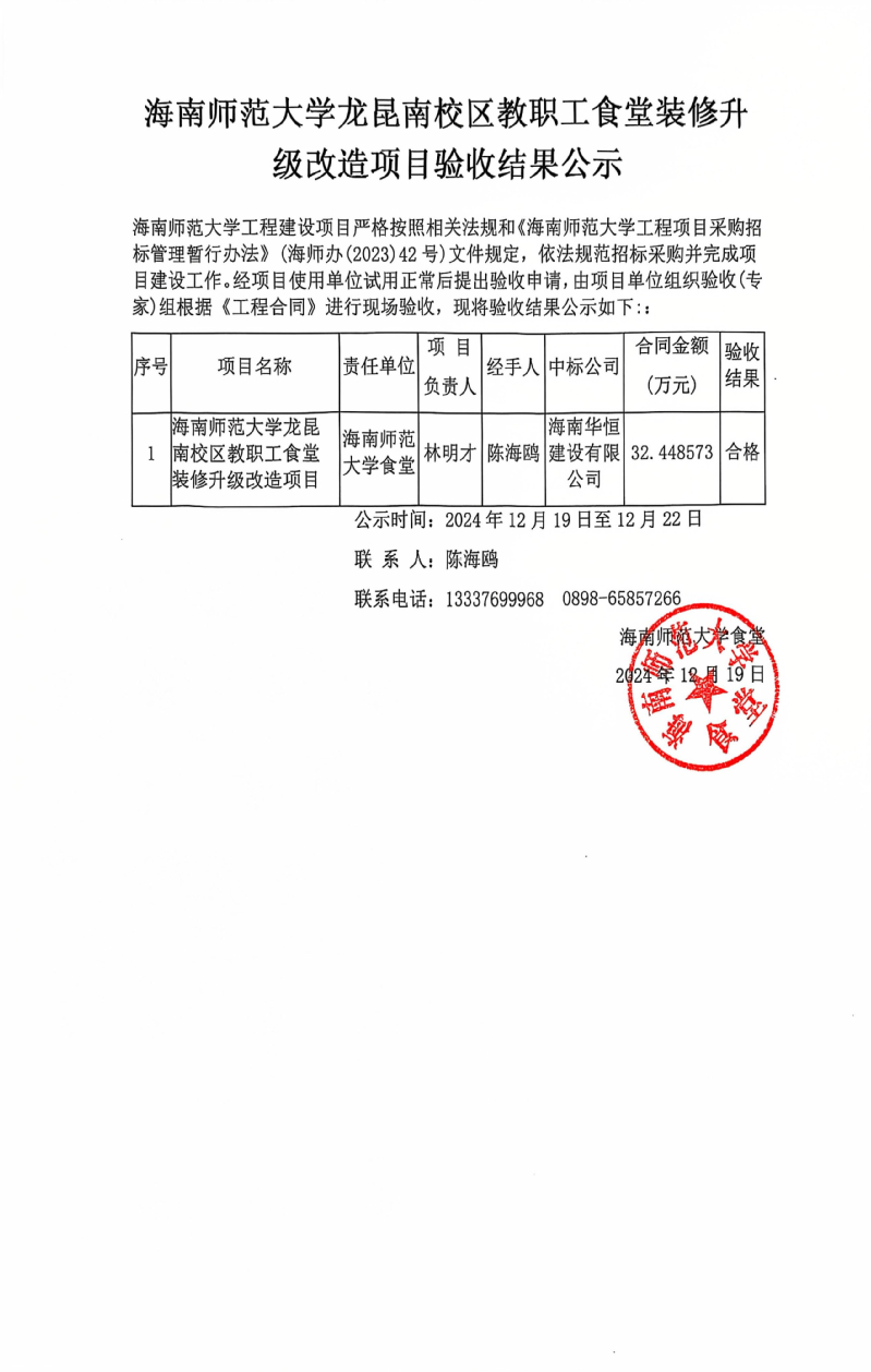 星空游戏官方龙昆南校区教职工食堂装修升级改造项目验收结果公示
