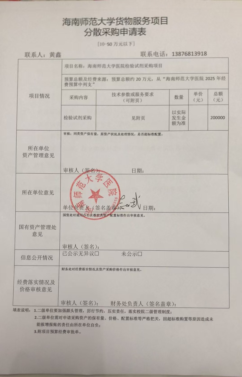 星空游戏官方医院检验试剂采购申请