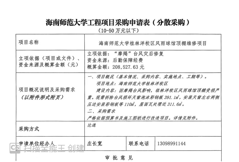 星空游戏官方桂林洋校区风雨球馆顶棚维修项目