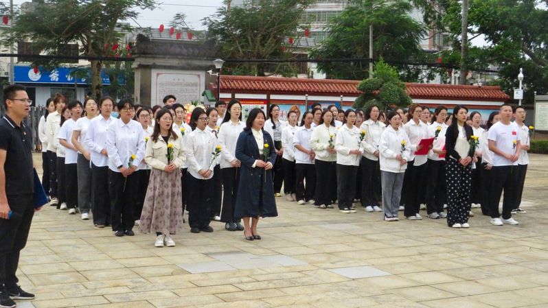 活动伊始,外国语学院全体师生肃立,齐声高唱《中华人民共和国国歌》,表达对祖国的无限热爱与对革命先辈的崇高敬意,并依次向纪念碑敬献花篮。在肃穆的氛围中,全体师生在纪念碑前低头默哀、三鞠躬,表达对先辈们的无限敬仰与追思。