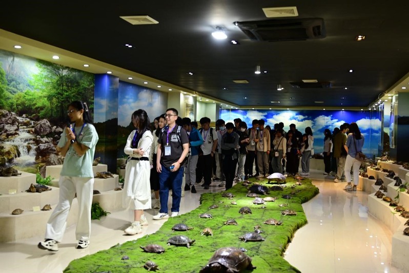 交流团师生先后参观了校史馆、生物多样性博物馆与海龟救助站。通过一张张学校老照片,详细了解学校的创办背景与发展历程;通过近距离观察海龟救助与生物化石标本,感受我校丰富的科学文化资源。
