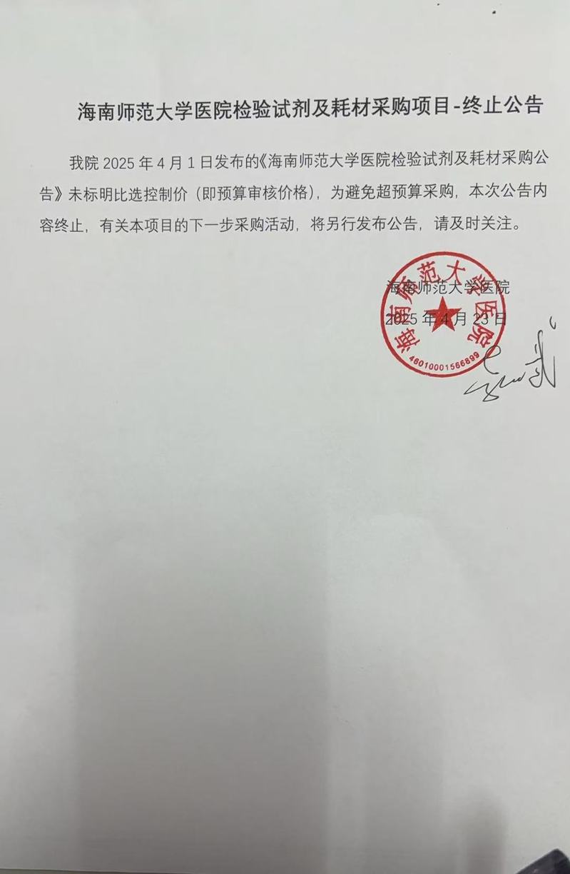 星空游戏官方医院检验试剂及耗材采购项目 - 终止公告