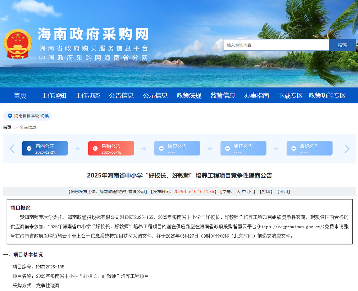公告链接:https://www.ccgp-hainan.gov.cn/maincms-web/articleHn?type=notice&id=40b90e59-00a3-42af-8cc4-0092cfac982e&planId=8a1d16c29711629101971b29c9430ad1