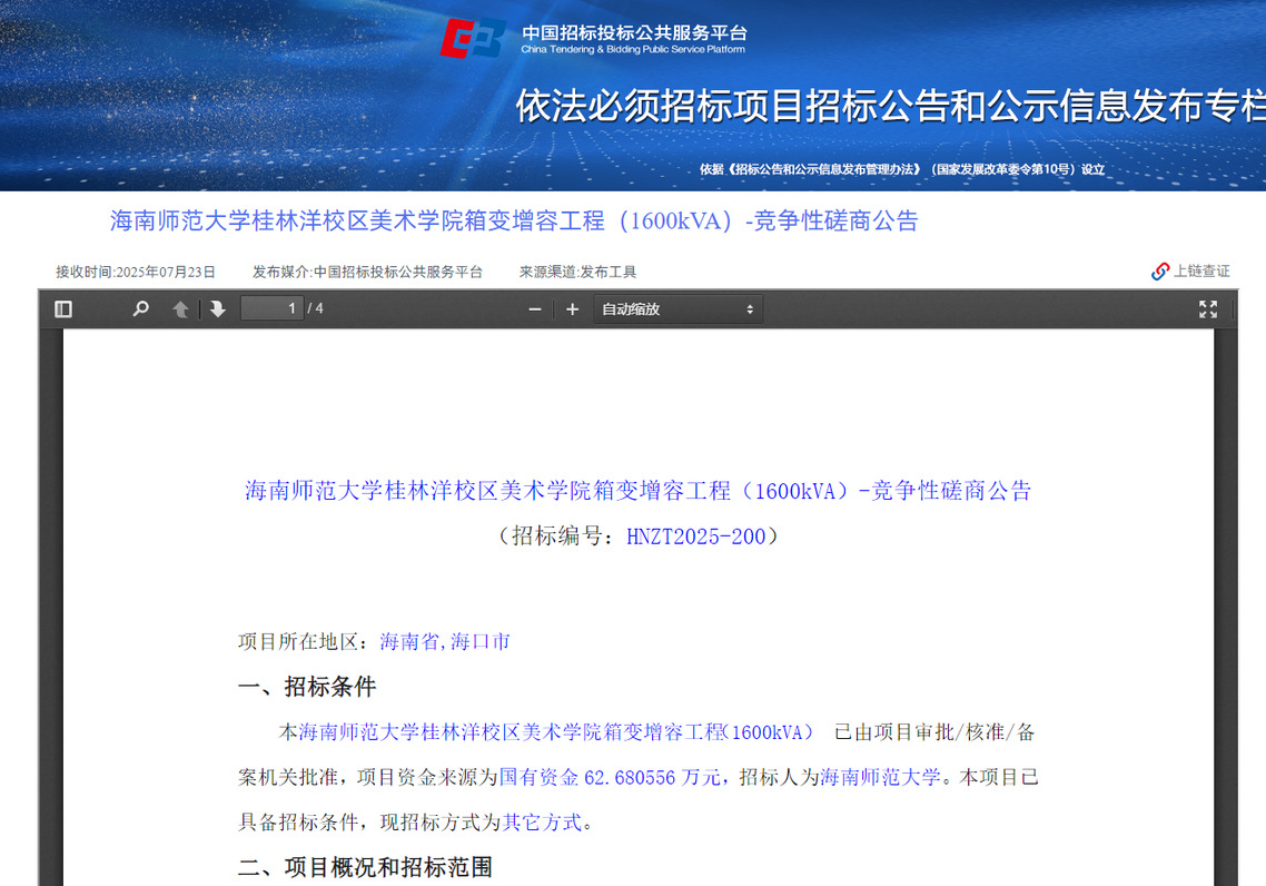 公告链接:https://ctbpsp.com/#/bulletinDetail?uuid=58826e37-c595-4a9b-a92d-星空体彩app官方下载fbb3c9fa5&inpvalue=%E6%B5%B7%E5%8D%97%E5%B8%88%E8%8C%83%E5%A4%A7%E5%AD%A6%E6%A1%82%E6%9E%97%E6%B4%8B%E6%A0%A1%E5%8C%BA%E7%BE%8E%E6%9C%AF%E5%AD%A6%E9%99%A2%E7%AE%B1%E5%8F%98%E5%A2%9E%E5%AE%B9%E5%B7%A5%E7%A8%8B&dataSource=0&tenderAgency=