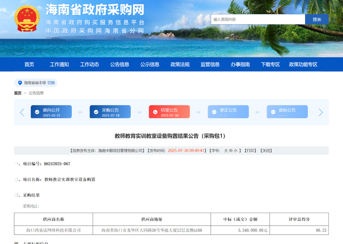 公告链接:https://ccgp-hainan.gov.cn/maincms-web/articleHn?type=notice&id=569a3611-3466-4f2e-907d-485f64f3eab5&planId=8a1d16c9973e6de40197a4afb1ce5f90&channel=c5bff13f-21ca-4dac-b158-cb40accd3035