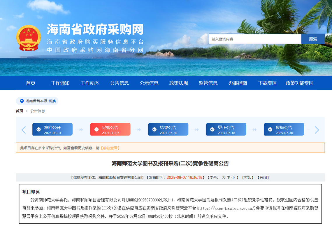 公告链接:https://ccgp-hainan.gov.cn/maincms-web/articleHn?type=notice&id=8e9d9042-8998-4784-8b4b-d976d650dda1&planId=8a1d16dd97d83d960197e2a61c4f00db&channel=c5bff13f-21ca-4dac-b158-cb40accd3035