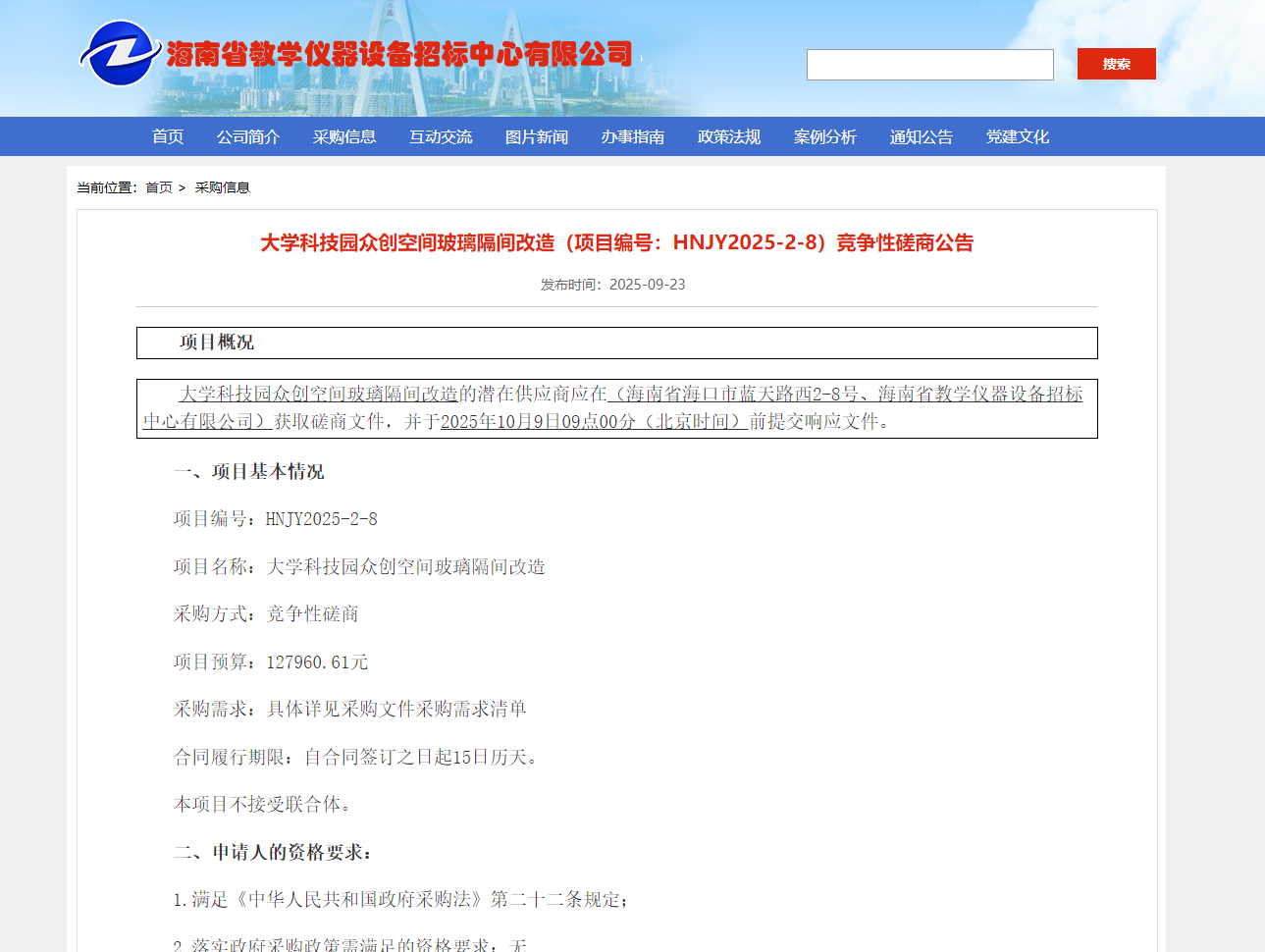 大学科技园众创空间玻璃隔间改造竞争性磋商公告