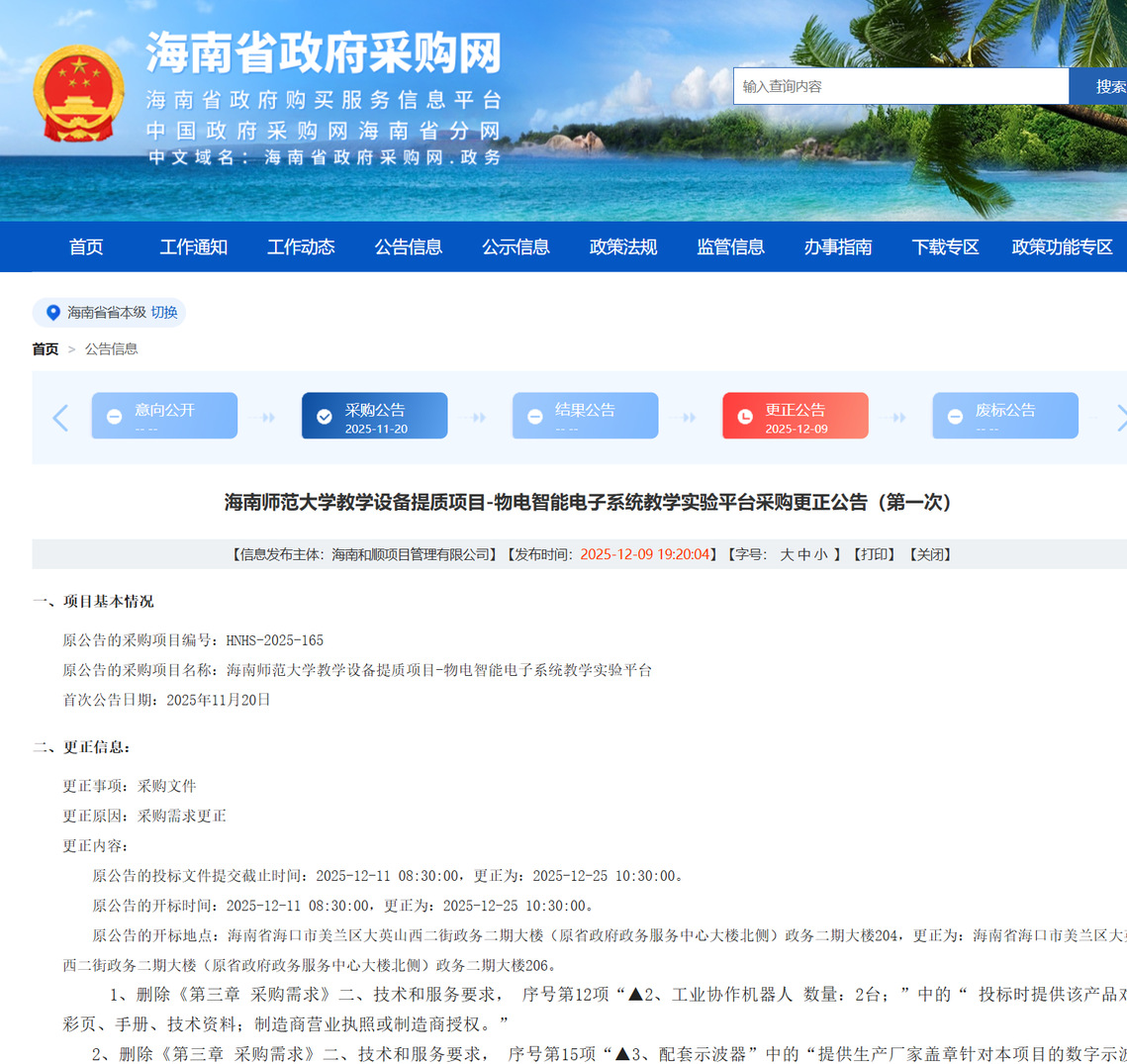 采购公告:https://ccgp-hainan.gov.cn/maincms-web/articleHn?type=notice&id=cd3f5797-6842-454d-a9ba-acbb907d47ef&planId=8a1d17439a0421bd019a14bdbe7037ee&channel=c5bff13f-21ca-4dac-b158-cb40accd3035