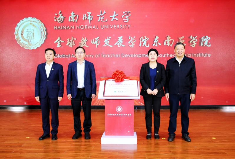 陈振华、许玫、聂清斌和雷儒金共同为全球教师发展学院东南亚学院揭牌。