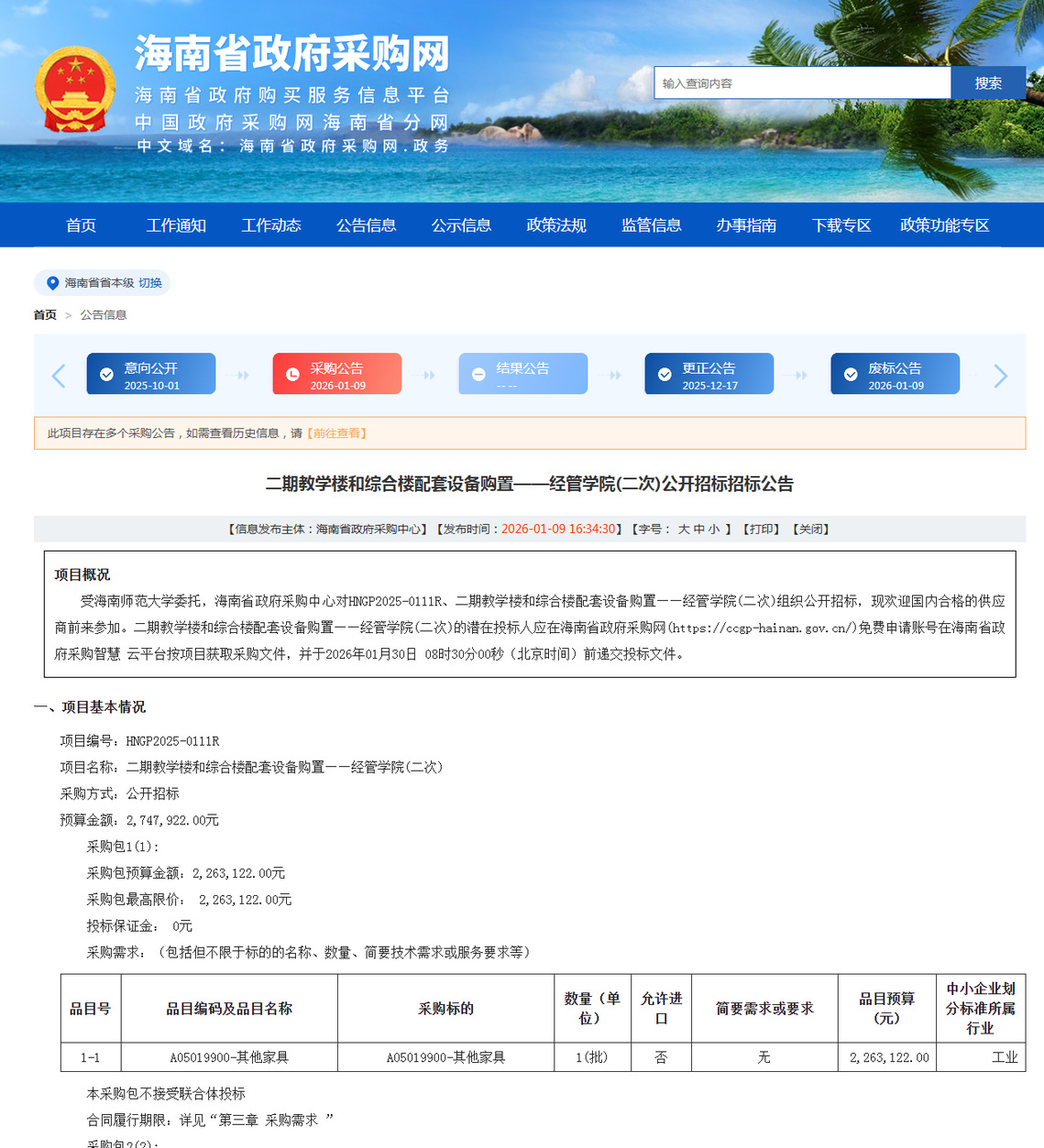 公告链接:https://ccgp-hainan.gov.cn/maincms-web/articleHn?type=notice&id=881e1339-d2a7-432b-917c-ab12416017e1&planId=8a1d1a2b9a3a2355019a9501ad05521e
