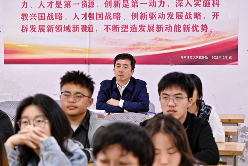 春回大地,万象更新。3月9日,新学期开学第一天,校党政领导班子成员许玫、聂清斌、符刘才、杨兹举、王瑜、徐基良、邓志斌深入龙昆南校区、桂林洋校区课堂教学一线,全面巡查新学期教学运行情况。