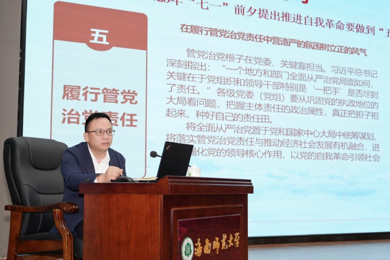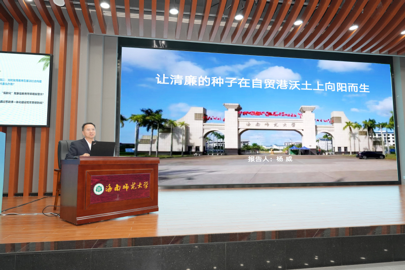 冷葆青作题为“以习近平新时代中国特色社会主义思想为指导,坚定建设清廉自贸港的信心和决心”的专题辅导报告。报告内容聚焦习近平总书记关于党的自我革命的重要思想,立足清廉自贸港建设实际,结合纪检监察工作实践和具体案例,深刻剖析了清廉文化融入思政课教学的重要意义和实践要求,教育引导广大教师自觉扛起立德树人政治责任,播撒“崇廉尚洁”种子,厚植清廉根基。