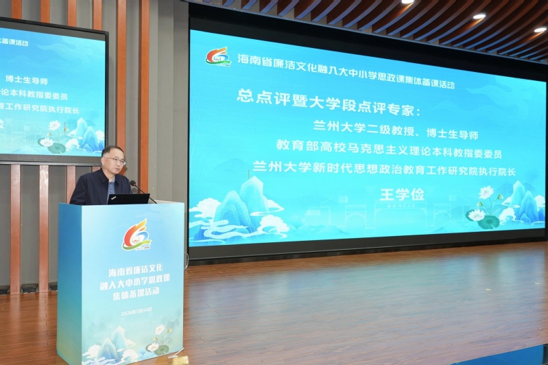 星空游戏官方杨威教授作题为“让清廉的种子在自贸港沃土上向阳而生”的报告。在“同题异构”说课展示环节,来自海南省大中小学思政课一体化区域联盟的4位优秀思政课教师代表围绕“廉洁文化融入思政课”主题,进行了小学、初中、高中、大学4个学段的现场说课,生动展现了廉洁文化教育在不同学段“循序渐进、螺旋上升”的设计理念,为深化大中小学思政课一体化教学改革提供了有益借鉴。兰州大学二级教授、教育部高校马克思主义理论本科教指委委员王学俭教授等四位专家进行点评,对集体备课活动给予了高度肯定。