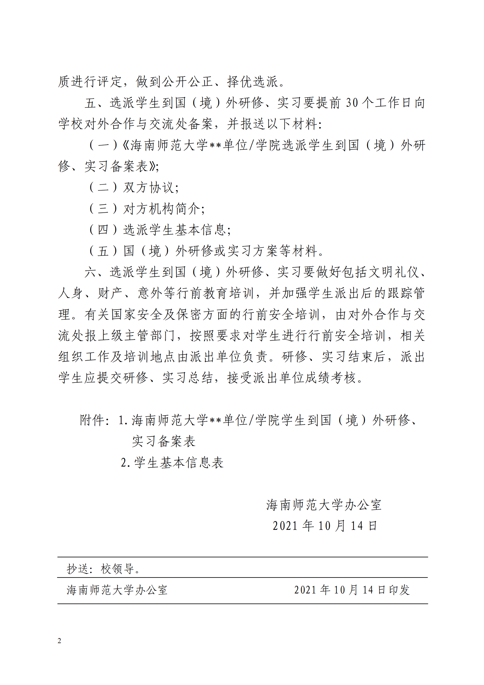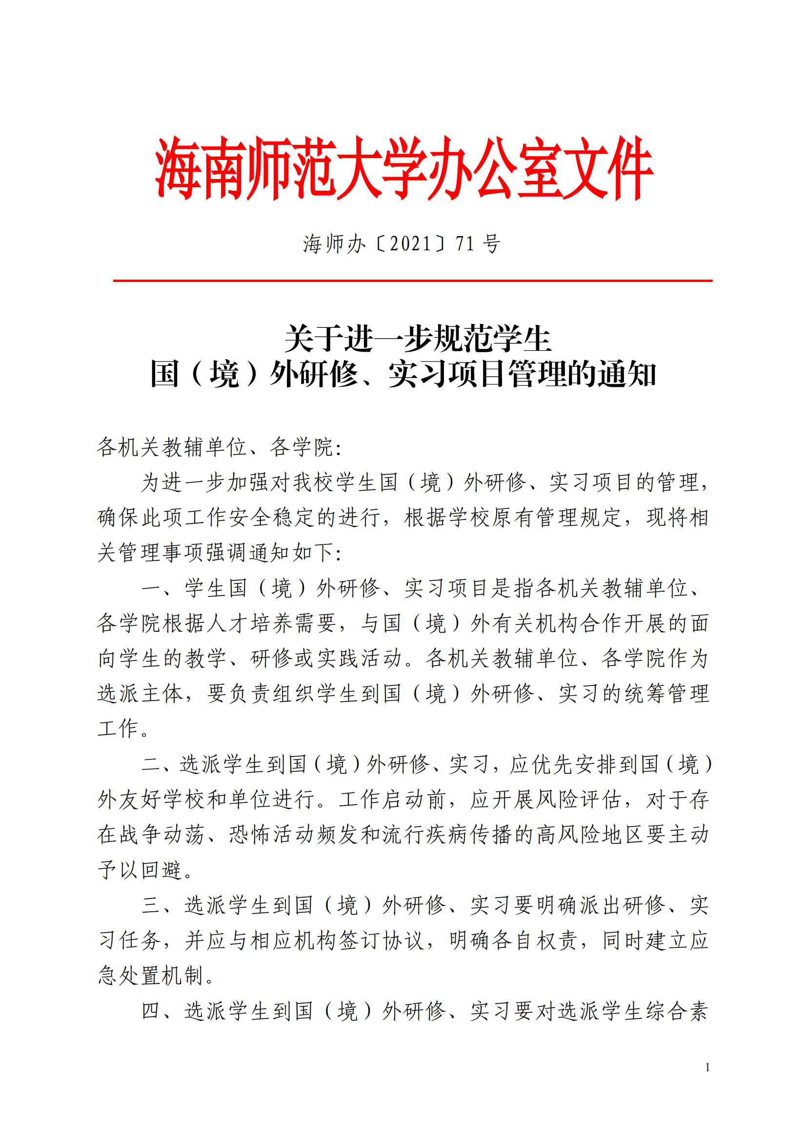 关于进一步规范学生 国(境)外研修、实习项目管理的通知