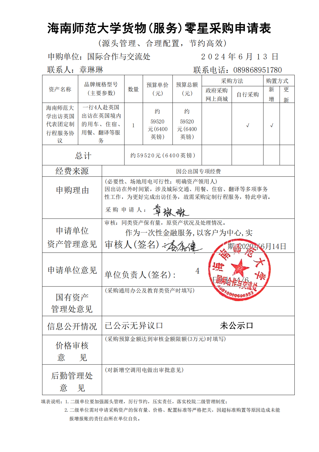 2024年6月国际合作与交流处出访服务采购公示