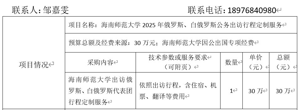 因工作需要采购公务出访团行程定制服务,现公示如下。