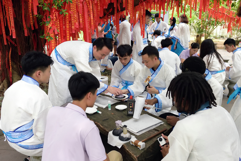 在东坡书院练习书法