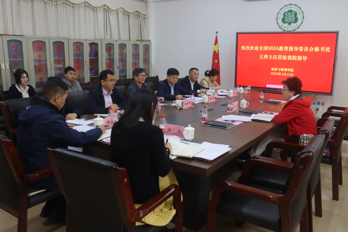 1月10日上午,全国MBA教学指导委员会秘书处主任王萍受邀到我院指导工作,学校党委常委、副校长杨玆举,研究生学院院长王凯华出席交流会,学院党委书记符史涵,院长陈江,副院长甘小军、叶成徽、杨宝强、芦炜,各办公室负责人参加交流会,交流会在桂林洋校区学院会议室举行。