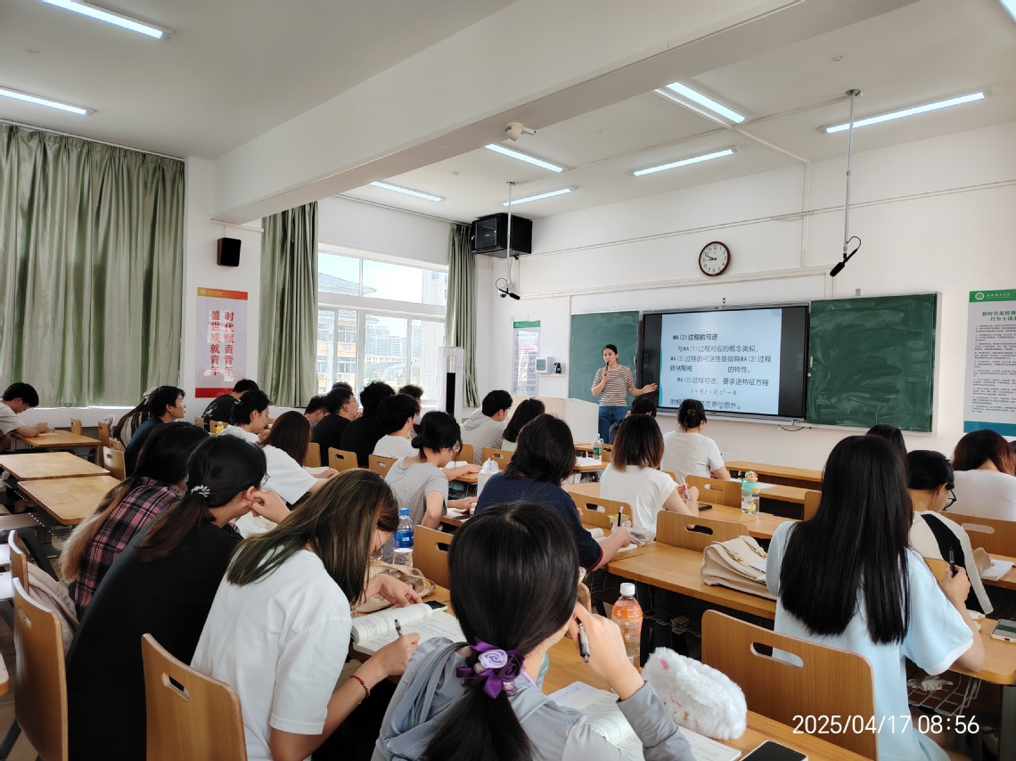 4月17日上午第2节课时间,在外语413教室,学校本科教学专职督导周萍教授、李树伟教授来我院听取青年教师徐玮老师为2022金融班所授的《金融时间序列分析及软件应用》课程,学院副院长芦炜,校级本科教学兼职督导、学院本科教学督导组长、金融系主任张慧蓉,学院新教师代表和教务办相关工作人员到场旁听。