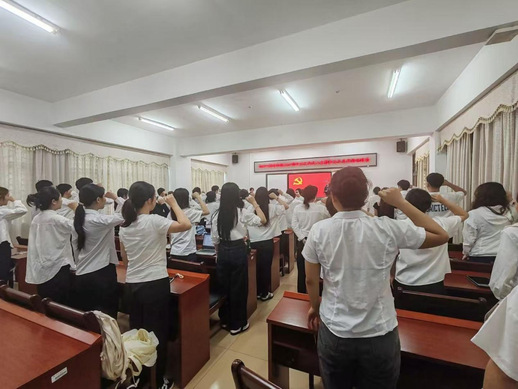 大会伊始,陆娜为全体毕业生党员上了以“青春向党 不负韶华——以党员使命照亮奋进新征程”为主题的一堂党课。她围绕“初心、使命、担当”三个关键词,通过分享自身经历、学长学姐们的经历阐释对党员身份的理解和感悟,同时勉励大家毕业走出校园后也要始终牢记党员身份,践行使命担当,为社会作出贡献,让“共产党员”这个光荣称号熠熠生辉。随后,陆娜带领全体毕业生党员重温入党誓词。铮铮誓言,字字铿锵。她希望同志们永葆赤子之心,无论何时何地,都铭记“我志愿加入中国共产党”的庄严承诺。