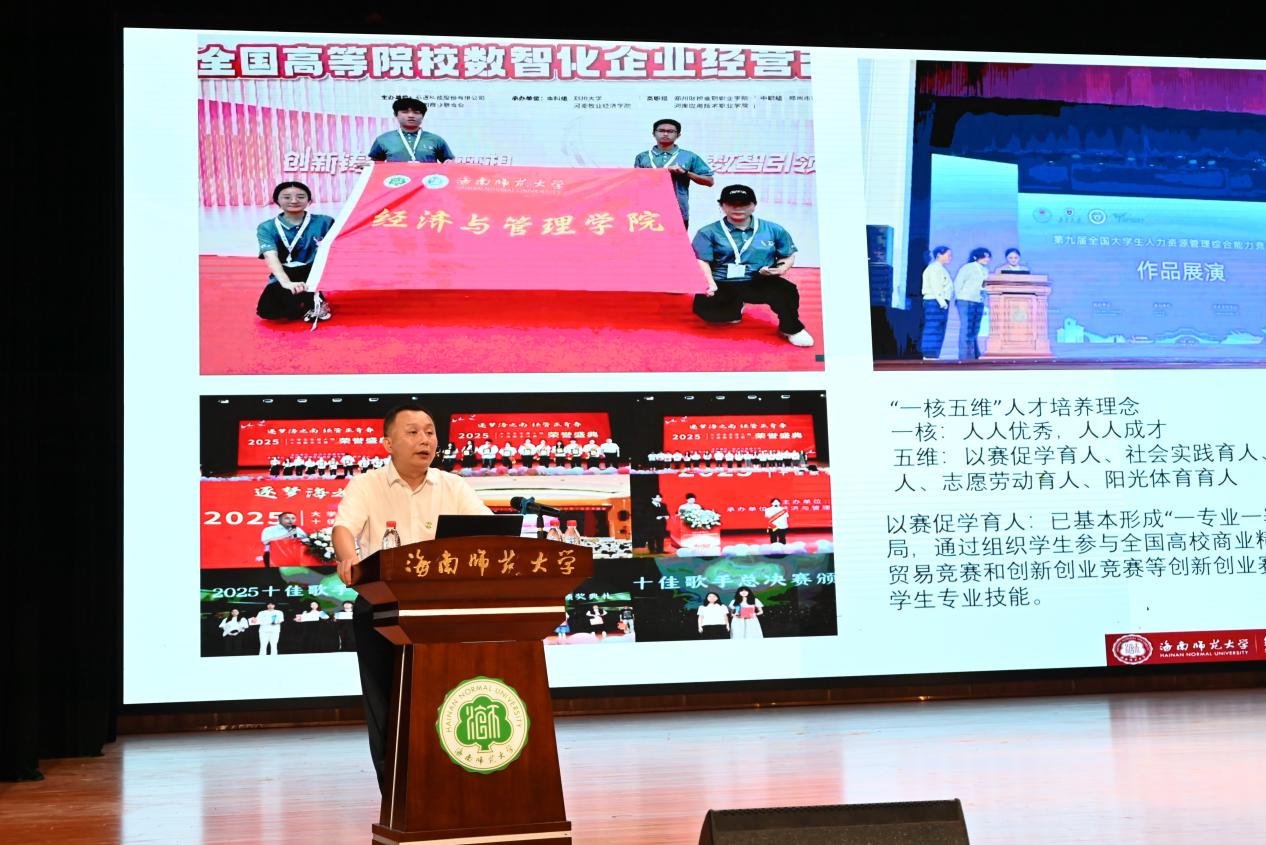 9月15日下午,桂林洋校区大学生活动中心一楼演艺厅内,学院党委书记符史涵为2025级新生讲授主题为《听党话跟党走 做新时代奋斗者》的“开学第一课”。