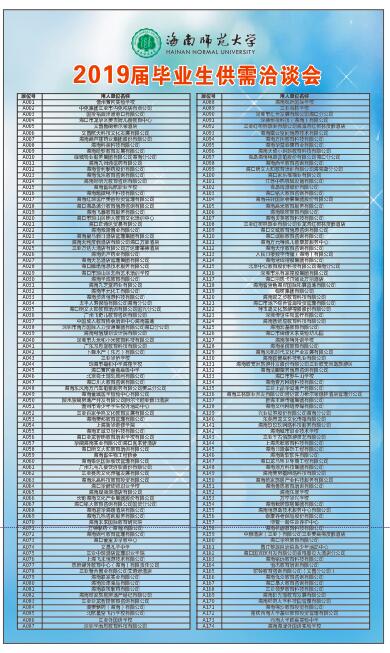 衷心感谢您对海南师范大学毕业生就业工作的关心和支持!为了拓宽毕业生就业市场,海南师范大学与海南省人力资源开发局联合举办 “2019年海南省高校毕业生供需洽谈会”暨“海南师范大学2019届毕业生供需洽谈会”。届时,热烈欢迎用人单位来我校选聘毕业生,广大毕业生前来应聘,洽谈会有关事宜通告如下: