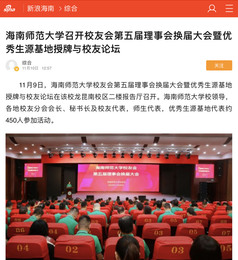 新浪海南《星空游戏官方召开校友会第五届理事会换届大会暨优秀生源基地授牌与校友论坛》报道链接:https://hainan.sina.cn/news/zh/2024-11-10/detail-incvpywq1852662.d.html?wm=3200