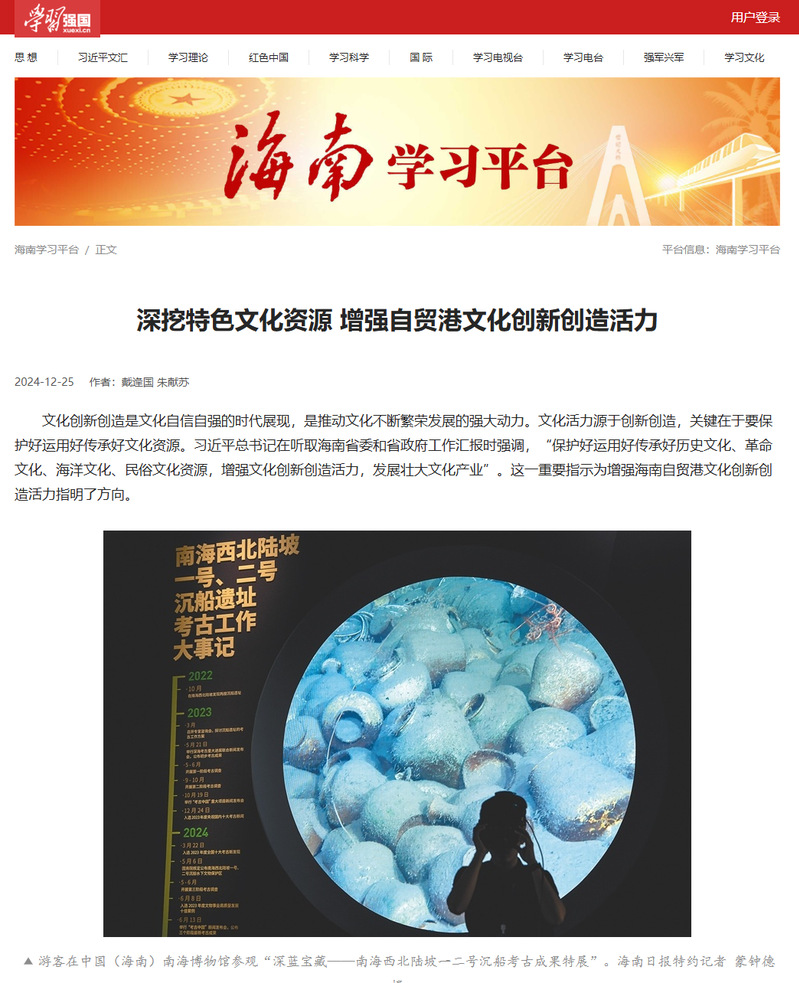 为学习宣传贯彻习近平总书记在听取海南省委和省政府工作汇报时强调的要“保护好运用好传承好历史文化、革命文化、海洋文化、民俗文化资源,增强文化创新创造活力,发展壮大文化产业。”的重要讲话精神,《海南日报》(理论版)发表了我校党委委员、马克思主义学院教师戴逢国的理论阐释文章《深挖特色文化资源 增强自贸港文化创新创造活力》,《学习强国》海南学习平台进行了全文转载。