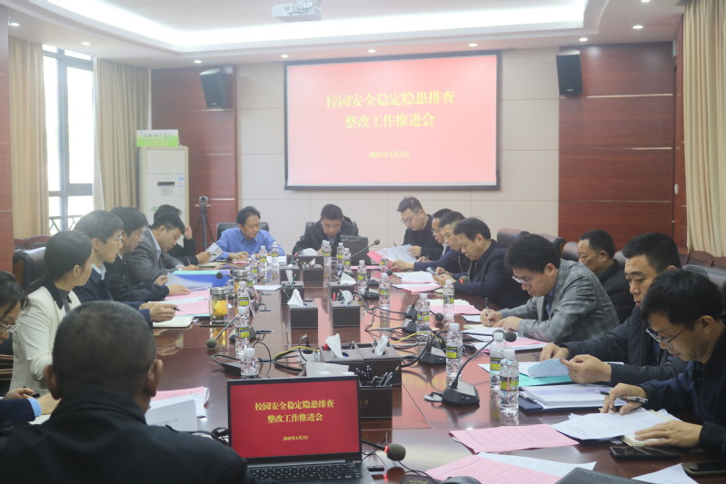 1月3日上午,学校在龙昆南校区第一办公楼三楼会议室召开校园安全稳定隐患排查整改工作推进会。校长陈相松出席,校党委常委、副校长张引主持会议,校园安全稳定工作领导小组成员单位参会。