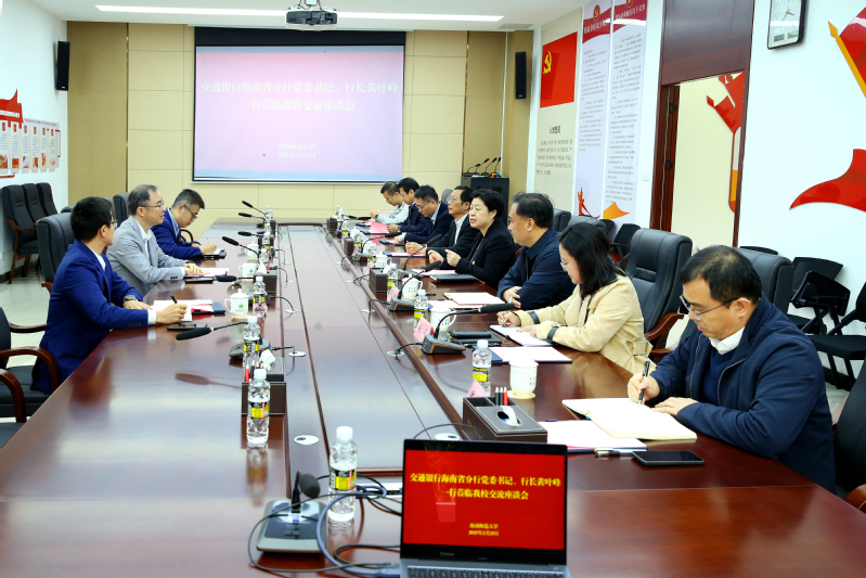交通银行海南省分行党委书记、行长黄叶峰一行到我校交流座谈