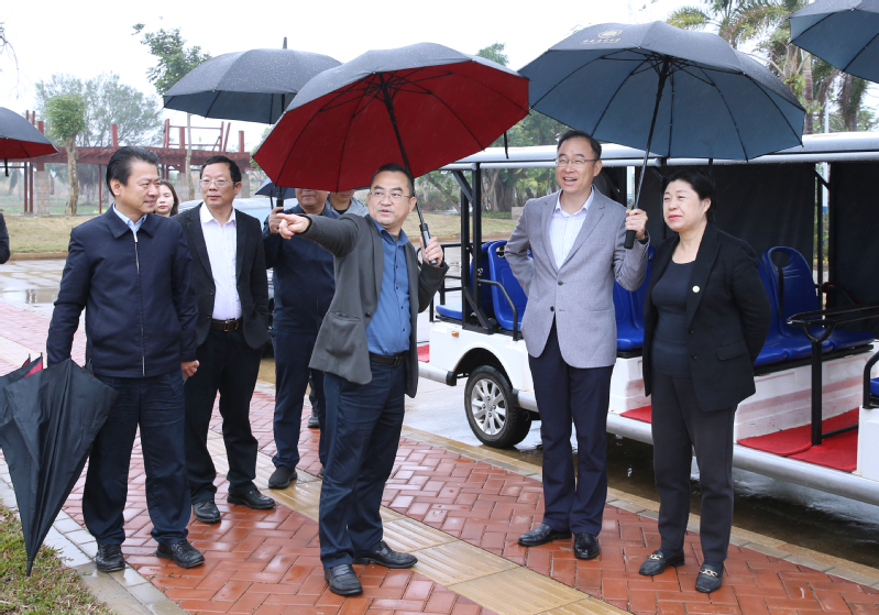会前,黄叶峰一行在校党委书记许玫、副书记符刘才的陪同下考察了桂林洋校区校园文化环境,深入了解我校校园文化建设与规划情况。