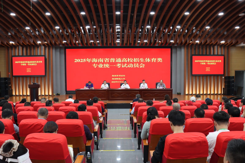 3月14日下午,2025年海南省普通高校招生体育类专业统一考试动员会在我校桂林洋校区图书馆一楼报告厅举行。海南省考试局局长王孝云、副局长曾令富,我校校长陈相松出席会议,我校副校长徐基良主持会议。