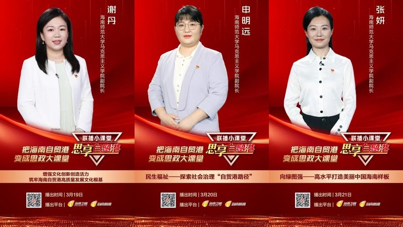 3月16日起,星空游戏官方马克思主义学院联合海南广播电视总台全媒体传播中心共同推出六期《联播小课堂》系列之“思享自贸港”,这也是习近平总书记“3·18”重要讲话精神六周年思政课改革创新巡礼之系列理论宣讲微课堂。本阶段“思享自贸港”课程为6期,由星空游戏官方马克思主义学院教师围绕以下六个板块内容授课:牢记殷殷嘱托 奋楫创新争先——习近平新时代中国特色社会主义思想在海南的生动实践;党建引领——把握海南自贸港建设的正确政治方向;高质量发展——因地制宜打造新质生产力重要实践地;文化自信——加快建设繁荣兴盛的文化强省;民生福祉——探索社会治理“自贸港路径”;绿水青山——高水平打造美丽中国海南样板。此次节目重点聚焦习近平新时代中国特色社会主义思想,特别是习近平总书记关于海南工作的重要讲话及指示批示精神,围绕海南“三度一色”“五个图强”,把海南自贸港变成思政大课堂。