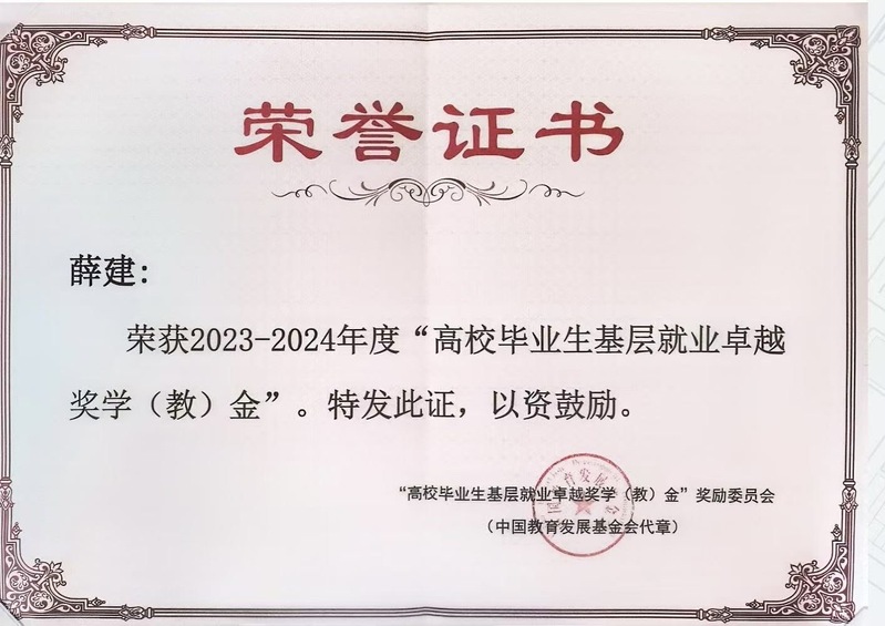 薛建荣获全国高校毕业生基层就业卓越奖