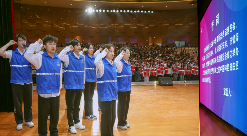 带队老师代表张国超、志愿者代表李倩分别发言,表示将全力做好志愿者的保障和管理工作,以饱满的热情和专业的素养,为消博会贡献青春力量。