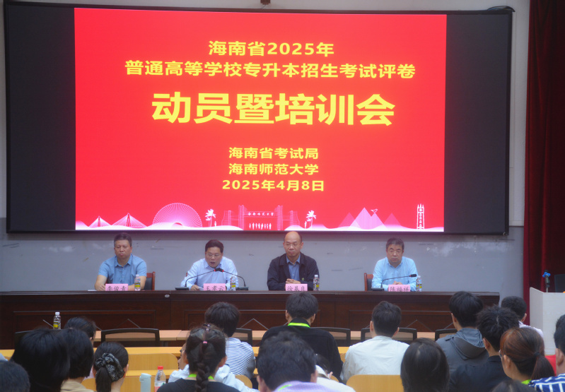 4月8日下午,2025年海南省普通高等学校专升本招生考试评卷工作动员暨培训会在我校龙昆南校区实验楼一楼报告厅举行。海南省考试局党组书记、局长王孝云,我校副校长徐基良出席会议。我校继续教育学院负责人、全体评卷教师及工作人员约100余人参加会议。