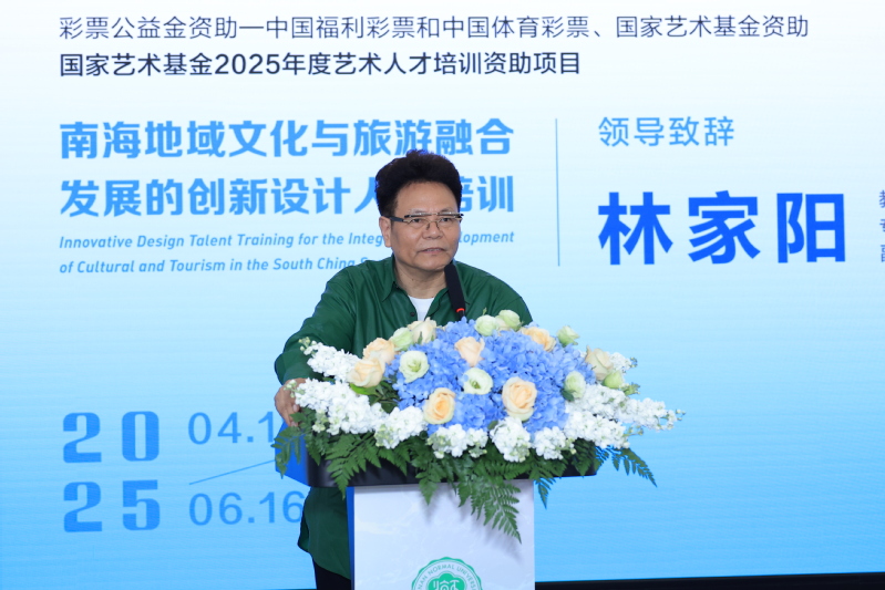4月18日,由我校美术学院主办的国家艺术基金2025年度艺术人才培训资助项目《南海地域文化与旅游融合发展的创意设计人才培训》在桂林洋校区美术馆举行开班仪式。教育部高等学校设计学类专业教学指导委员会副主任林家阳教授,我校党委常委、副校长、美术学院院长张引教授出席开班仪式。