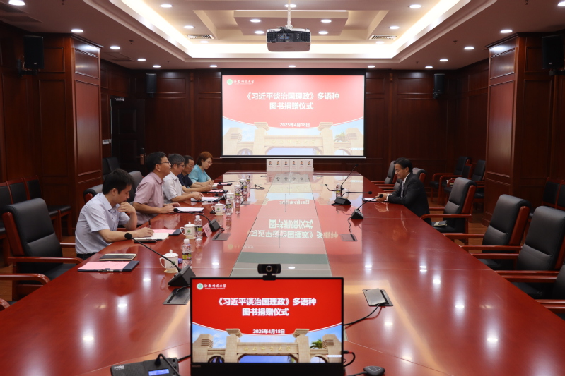 仪式上,余富文代表北京崇学文化发展有限公司向我校捐赠《习近平谈治国理政》多语种图书201册。杨兹举代表学校表示感谢,指出《习近平谈治国理政》多语种图书对于全校师生深入学习贯彻习近平总书记一系列原创性治国理政的新理念、新思想、新战略,深刻认识新的时代条件下中国发展的重大理论和现实问题,具有重要意义。余富文表示,捐赠《习近平谈治国理政》多语种图书用于学校强化理论学习,加强思政工作。希望双方继续在智库建设、对外文化交流项目加强深度合作,共同携手对外讲好中国发展的故事。