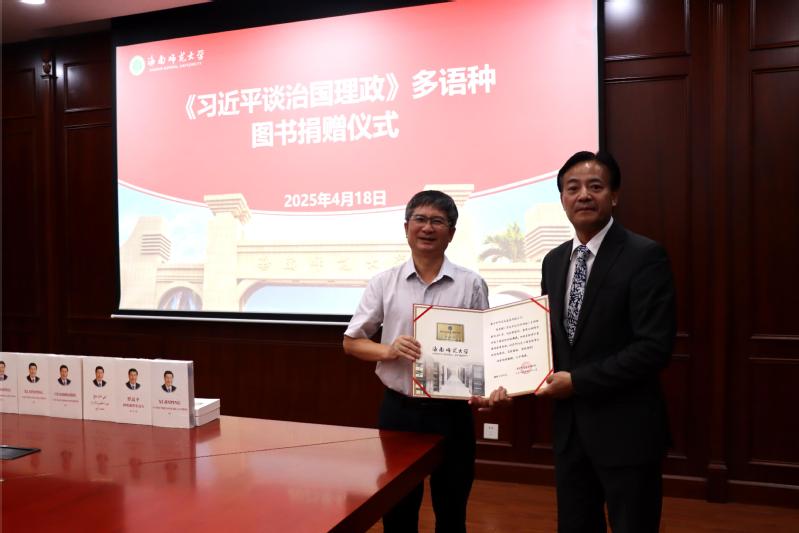 4月18日上午,北京崇学文化发展有限公司向我校捐赠《习近平谈治国理政》多语种图书,捐赠仪式在桂林洋校区图书馆五楼会议室举行。我校党委常委、副校长杨兹举,北京崇学文化发展有限公司总经理余富文出席,我校党委宣传部、图书馆负责人,马克思主义学院教师代表参加捐赠仪式。