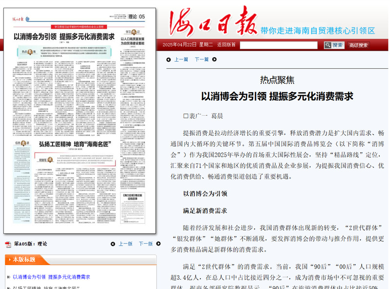 《以消博会为引领提振多元化消费需求》报道链接: