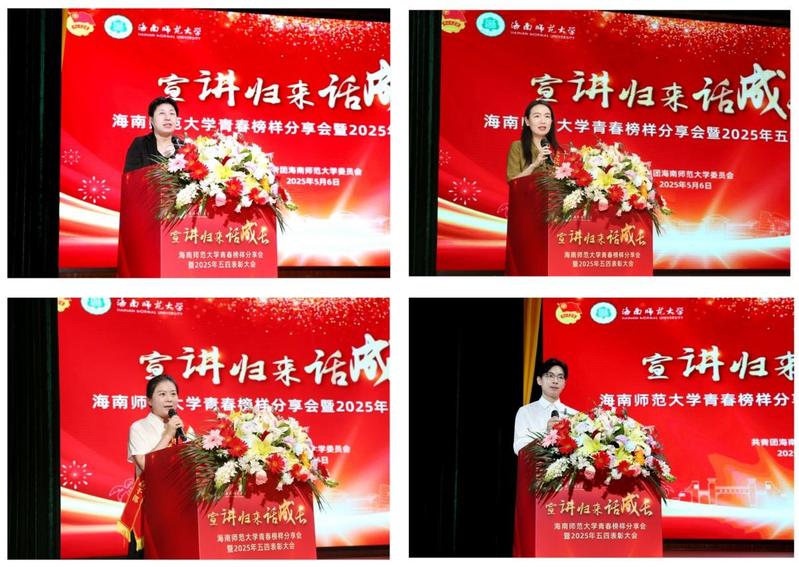 活动在学校榕树青年宣讲团发展纪实视频《青春宣讲行建功新时代》中拉开帷幕。在“宣讲归来话成长”环节,王金奎、李欣柔、吴思咏、武晓烁、郑延泽、陈晴等六位学生宣讲员,结合自身前期宣讲实践,从服务基层发展、助力生态文明、数字赋能乡村教育、守护文化根脉等方面讲述了自身“宣讲+实践”过程中的成长故事。在2025年五四表彰环节,大会对2024-2025学年度表现突出的“五四红旗团委”“五四红旗团支部”等集体与“优秀共青团干部”“优秀共青团员”等个人进行表彰。2025年中国新时代青年先锋奖获得者何素丹、地理与环境科学学院团委书记阮港、化学与化工学院本科生李潇阳等师生作为获奖代表发言。