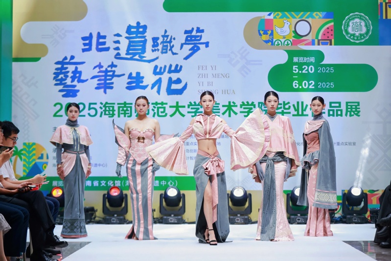 近年来,美术学院致力于探索现代性与民族性相结合的发展道路,在人才培养过程中注重发挥海南文化传承和社会服务的功能,探索传统文化艺术和非物质文化保护的新路径。本届毕业展以传播美育文化,传承保护非物质文化遗产为创作导向,集中展示了美术学院2025届毕业生融合非遗元素与现代艺术的200余件作品,涵盖环境艺术、视觉传达、服装设计、绘画、书法6个专业门类,展现了美术学院青年学子对海南非遗技艺的创新诠释与时代表达。展览将持续至6月2日。