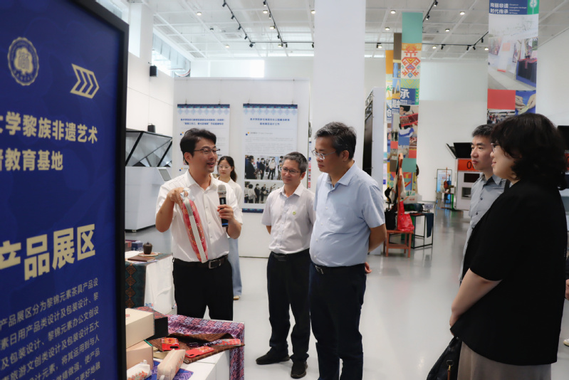 会前,卢鉴一行参观了我校美术馆“黎锦中的文化符号”展和国家大学科技园展厅,并实地走访了园区企业。