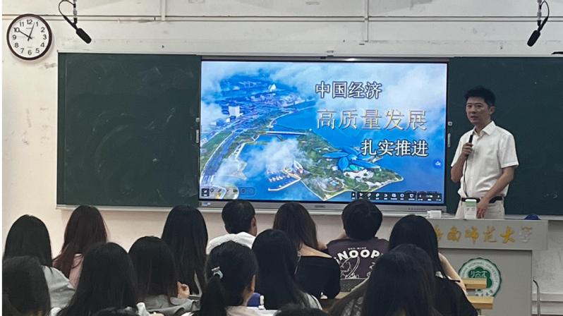 课堂上,张引结合党的创新理论成果与当前国际国内形势,围绕“中国经济发展信心从哪来”“迎难而上靠什么”“奋发有为怎么干”等问题,深刻剖析了中国经济迎难而上的内在规律和中国经济奋辑向前的重点任务,勉励广大青年学子要珍惜韶华、勤学笃行,不断提升思想觉悟和道德修养,将爱国情、强国志、报国行自觉融入实现中华民族伟大复兴的奋斗之中。